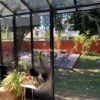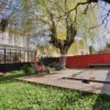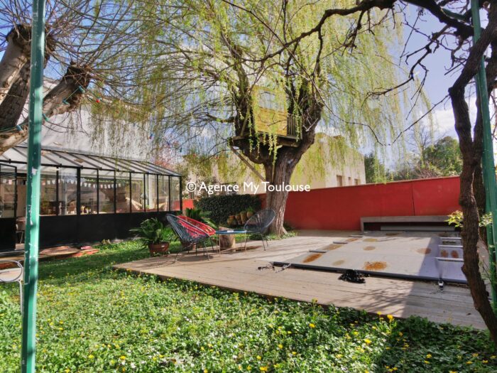 Un espace salon plus cosy, avec des assises confortables, autour d’un poêle à bois, est propice aux moments plus calmes. La grande salle à manger, entièrement vitrée s’ouvre sur le jardin, doté de grands arbres, dont un magnifique saule pleureur qui amène beaucoup de charme et de poésie. La piscine ensoleillée laisse imaginer d’agréables moments en terrasse, à l’ombre des arbres.
