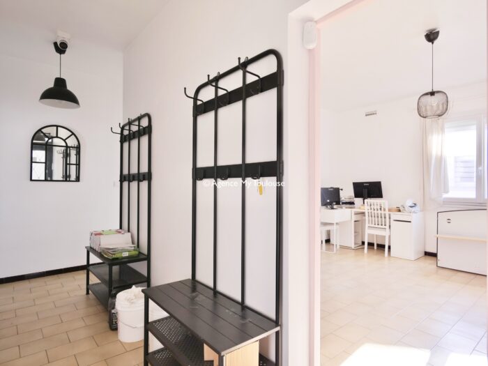 Maison de 120 m² + garage de 40 m², aujourd'hui utilisée comme bureaux mais aisément transformable en maison familiale fonctionnelle, avec jardin arboré !