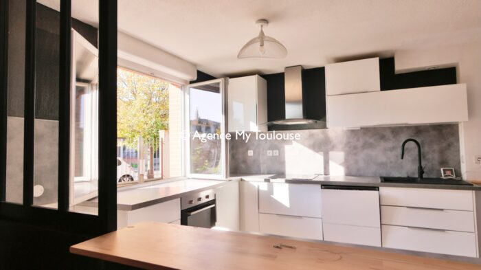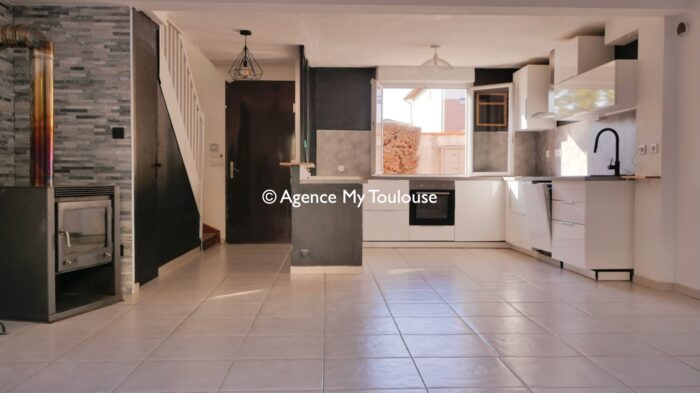 Maison au calme dans un environnement résidentiel, habitable de suite, grande pièce de vie de 41 m2 avec poele à bois, cuisine ouverte.