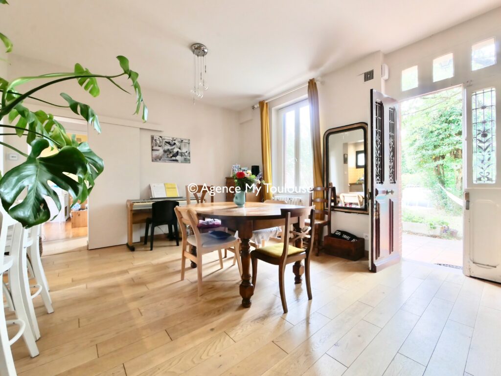 Toulouse, Croix de Pierre, maison rénovée de 113m2 sur 2 niveaux, 3 chambres et un bureau, avec un agréable jardin arboré à l’avant et un grand garage (stationnement + atelier)